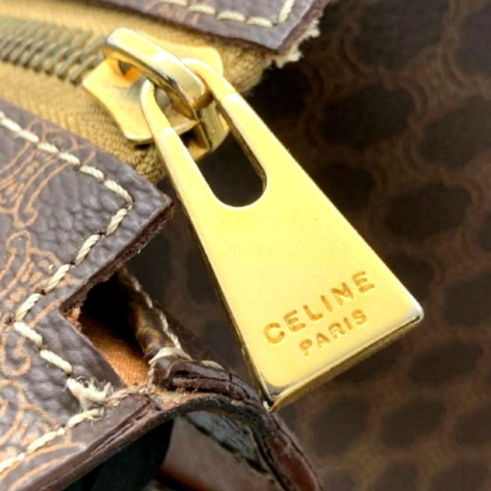 CELINE セリーヌ ハンドバッグ マカダム柄 MC96 PVC レザー ブラウン シンプル レディース
