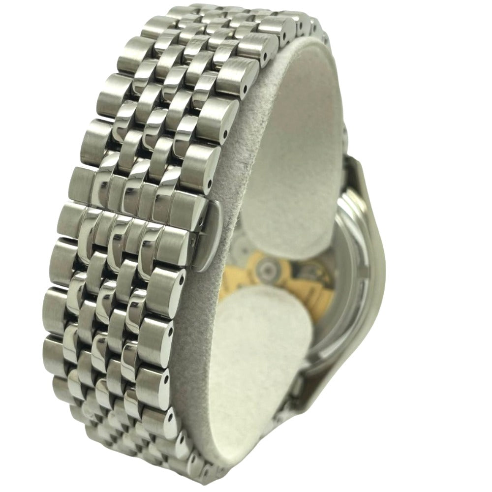 カレンダータイプ:日付表示 ベルトカラー:シルバー系 アナログ式・デジタル式:アナログ式 動力:自動巻き式 形状:ラウンド |