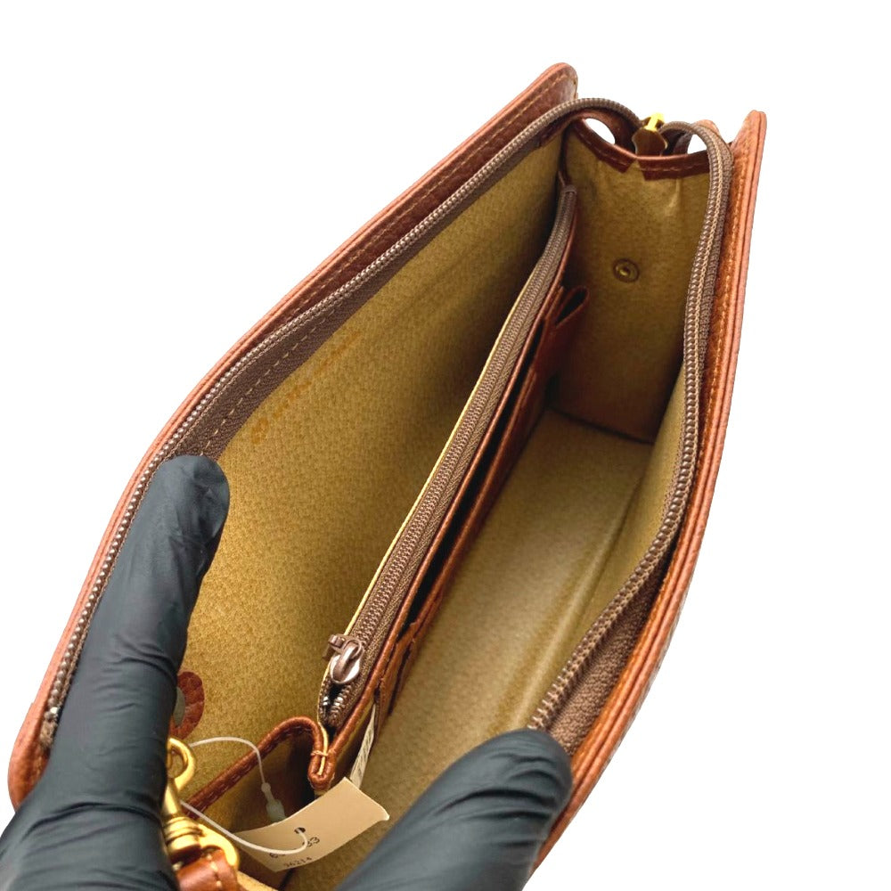 mila schon ミラショーン セカンドバッグ 96214 ストラップ付 クラッチバッグ セカンドバッグ ブラウン ユニセックス コンパクト レザー 牛革 ゴールド金具 未使用品