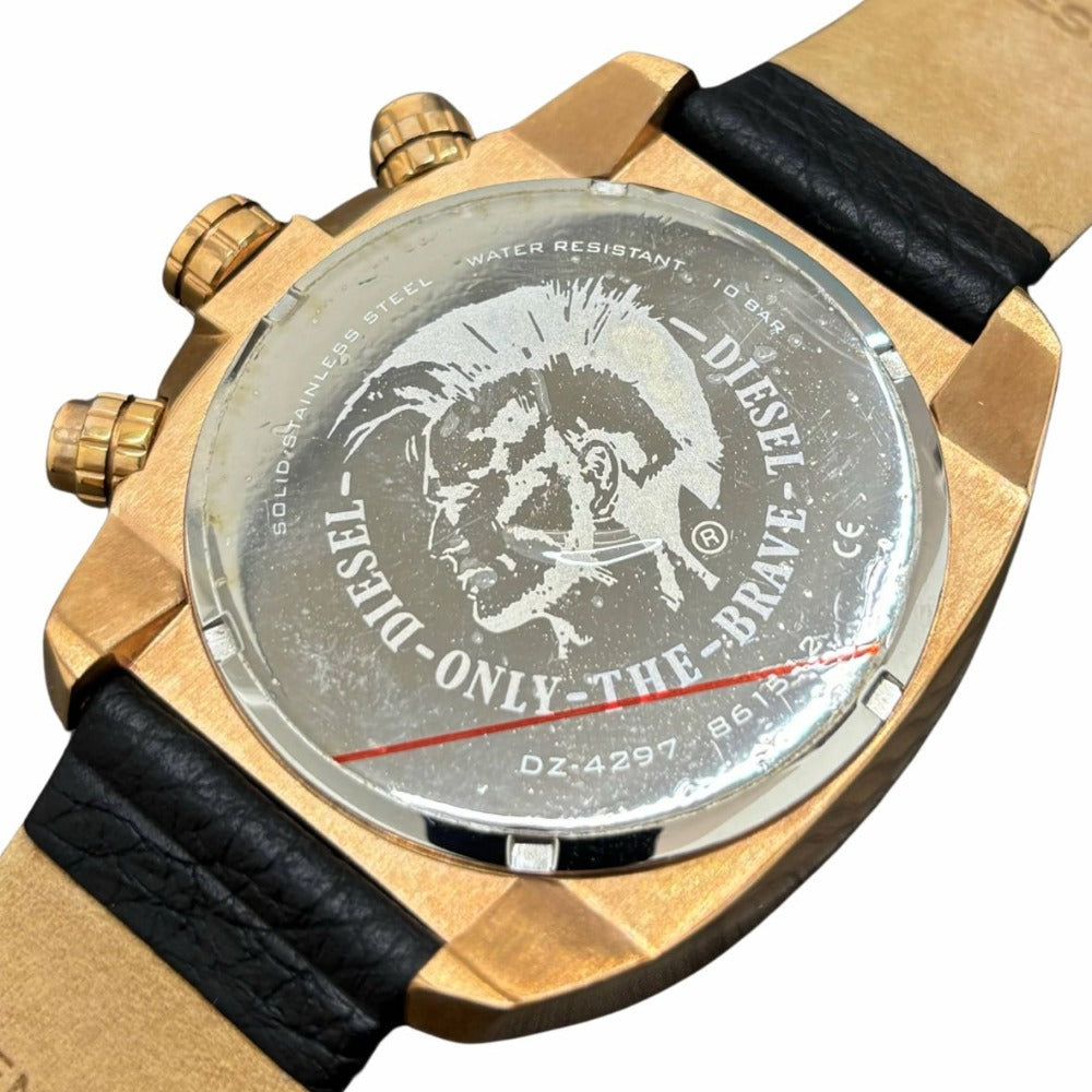 DIESEL ディーゼル 腕時計 オーバーフロー クロノグラフ DZ4297 ゴールド×ブラック レザーベルト メンズ