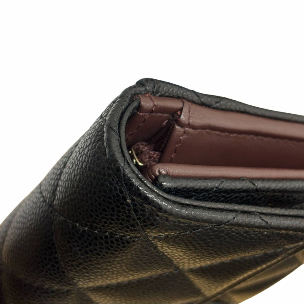 CHANEL シャネル 三つ折り財布 AP0232 Y01864 キャビアスキン ミディアムクラシックフラップウォレット ブラック レディース