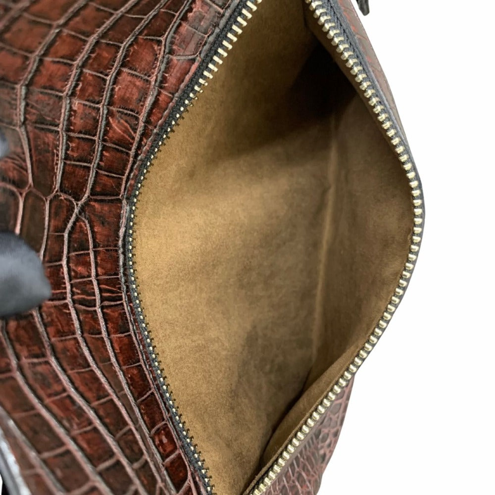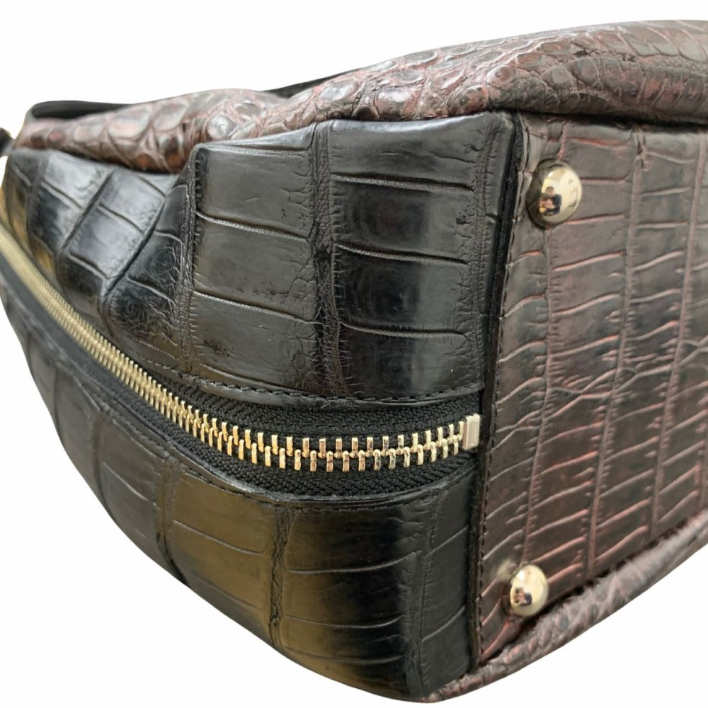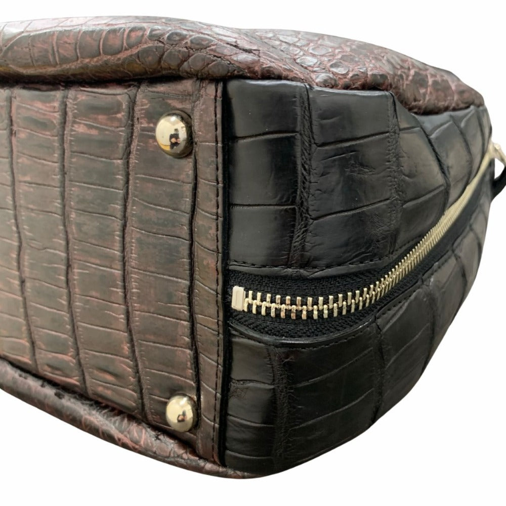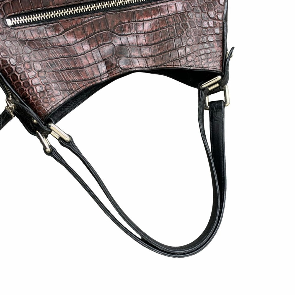 ハンドバッグ クロコ型押し レザー ハンドバッグ ユニセックス ダークパープル×ブラック ホーボーバッグ ワンショルダー A4収納可能