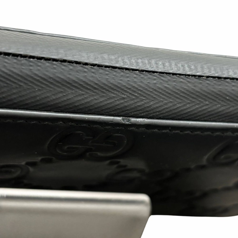 グッチ 771421 GGラバーエフェクト シグネチャー レザー ブラック 黒 エンボス 型押し シンプル メンズ GUCCI 長財布 ジッピーウォレット
