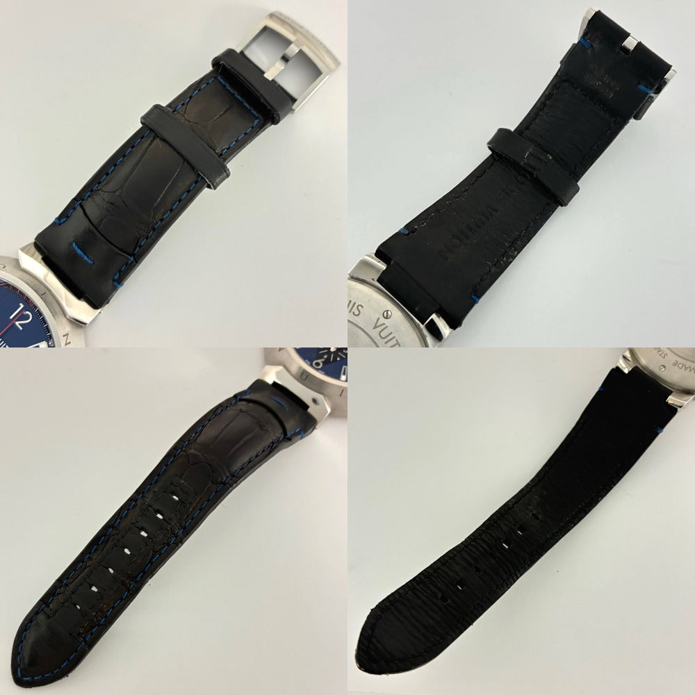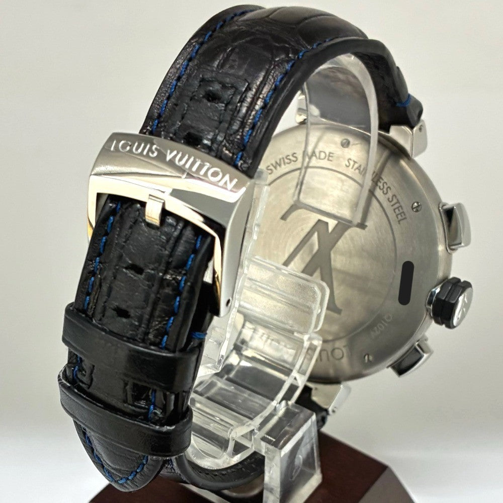 ルイ・ヴィトン Q102V タンブール クロノグラフ 44mm Vモチーフ ブルー文字盤 自動巻き メンズ LOUIS VUITTON 腕時計