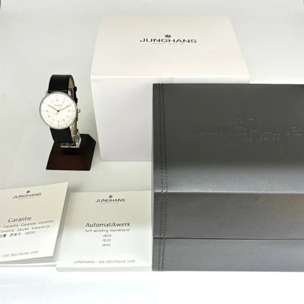 ユンハンス マックスビル 自動巻 38mm Ref.027/3500.02 機械式 ステンレス レザーストラップ 50m防水 メンズ JUNGHANS