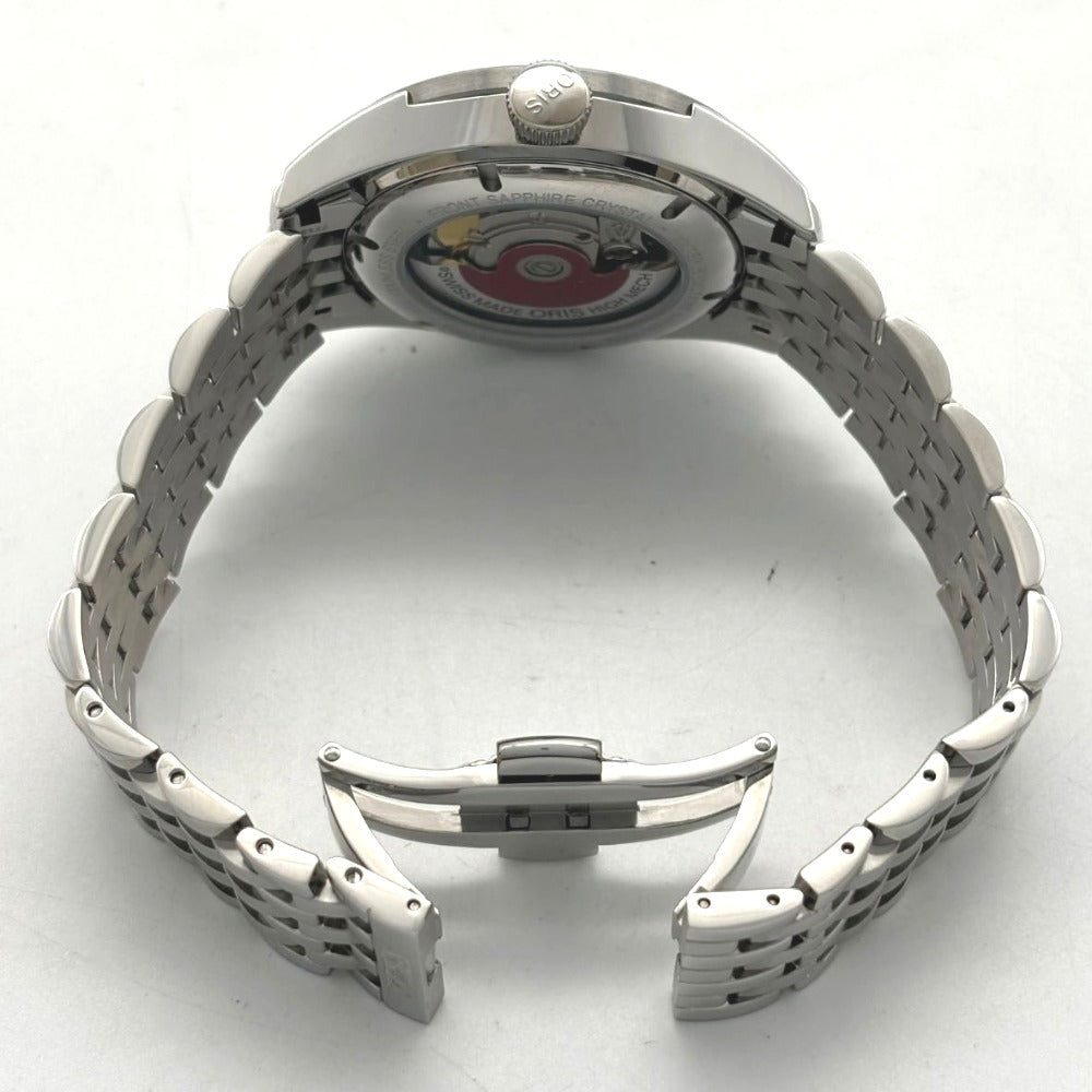 カレンダータイプ:日付表示 風防素材:サファイアクリスタル ベルトカラー:シルバー系 アナログ式・デジタル式:アナログ式 動力:自動巻き式 形状:ラウンド |